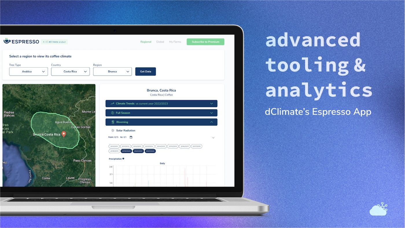 With the power of data analysis, dClimate is building a game-changer for coffee production risk management. It pulls global weather insights from 18+ countries and 150+ growing regions to give precise intelligence on Arabica & Robusta cycles making it easier than ever to assess the potential impact climate can have on your crop! Stay tuned for the launch of this application shortly!